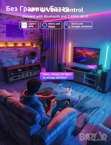 Управление чрез приложение и глас: Съвместимо с Alexa и Google Assistant, управление чрез Lepro+ приложението.
