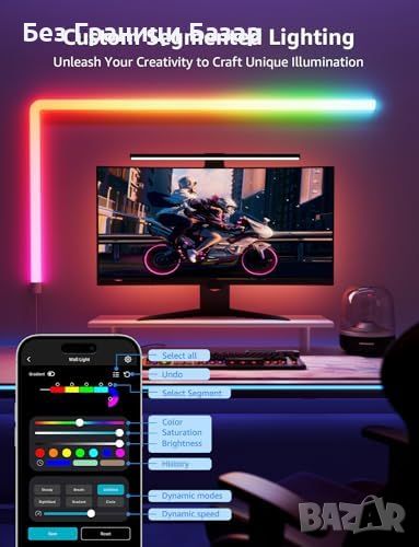 Персонализация на светлината: Регулиране на цвета, наситеността и яркостта за всяка секция.