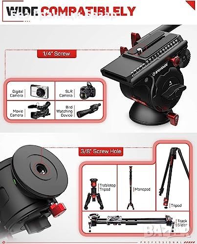 Широка съвместимост: 1/4 инчов монтажен винт и 3/8 инчов резбов порт за стативи и друго оборудване.