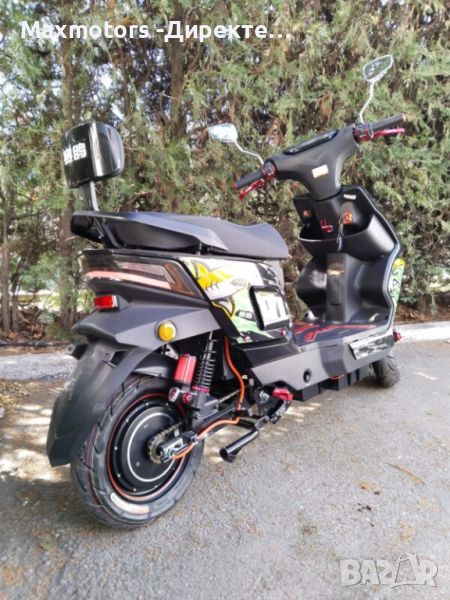 Удобен двуместен електрически скутер за градски и извънградски условия. Голям пробег, достигащ до 70-80 км, зависещ от избрана от вас конфигурация на батерийте. Пълен пакет документи за регистрация в КАТ. Багажен отсек под седалката. Аларма с дистанционно управление. Голям LED дисплей с подсветка, с показания за скорост, изминато разстояние, пътепоказатели, светлини, ниво на батерията и др.