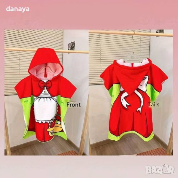 Плажно пончо за деца в супер свежи цветове. Пончото е с принт на Червената шапчица. Удобен плажен халат с голяма качулка и атрактивен принт, който впечатлява децата. Супер мекичка детска хавлия пончо за малки момиченца! Подходящо за деца до 10 годишна възраст или височина на детето до 130см.