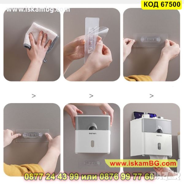 Тази поставка притежава водоустойчиво покритие, което ще предпази от намокряне с вода тоалетната хартия. Освен това, нашата водоустойчива поставка за тоалетна хартия се поставя изключително лесно и бързо, като няма да е необходимо да пробивате стената, защото поставката има самозалепваща основа за отлично и сигурно закрепване. За да декорирате помещението Ви допълнително можете да поставите и освежител за въздух или друг аксесоар по Ваше желание.