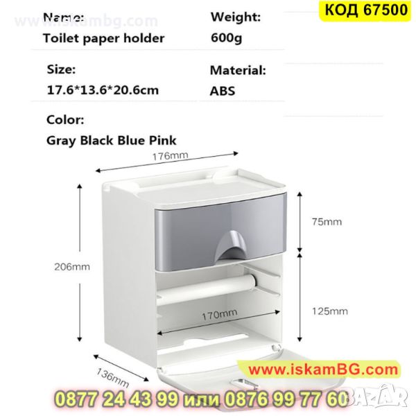 Водоустойчива поставка за тоалетна хартия от пластмаса - КОД 67500