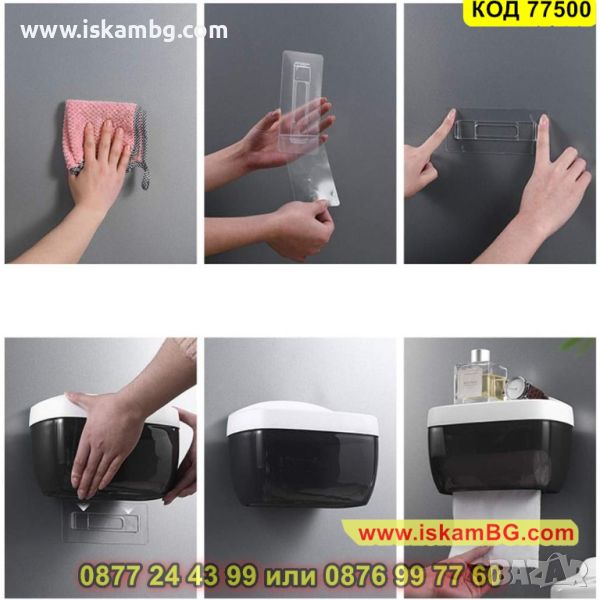 Водоустойчивият диспенсър чекмедже е предназначен да запази суха и чиста тоалетната хартия в банята Ви. Към него има и интегрирана поставка за телефон. Този водоустойчив диспенсър чекмедже е практичен и стилен аксесоар за всяка баня. Той Ви подарява лесен достъп до тоалетната хартия, както и място, където да оставите Вашия смартфон по време на посещението в тоалетната. Чекмеджето за тоалетна хартия с поставка за телефон се поставя лесно и бързо – нужно е само да почистите и подсушите повърхността, където искате да го поставите, след което да залепите аксесоара на стената. Благодарение на водоустойчивия капак ще запазите тоалетна хартия и съдържанието на чекмеджето от вода и влага.