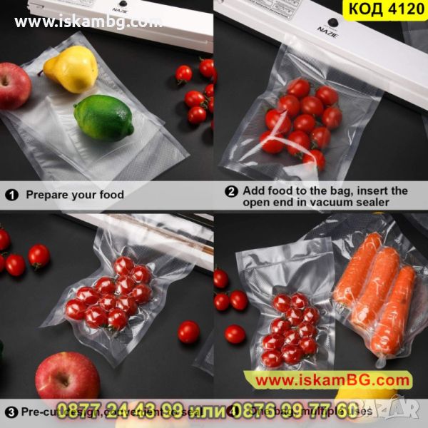 50 броя гофрирани торбички за вакуумиране на храна 17х25см. - КОД 4120