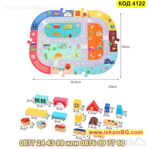 Включва 88 дървени блокчета + 12 части дървен пъзел.