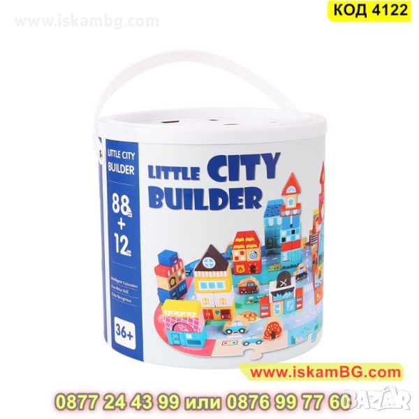 Дървен конструктор "City Builder" с кофа - комплект от 100 части - КОД 4122