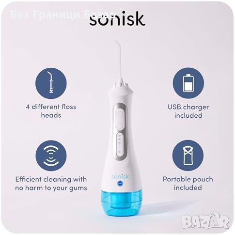 Ефективно почистване: Технология с импулсен поток за дълбоко проникване между зъбите и под венците, премахва плаката и остатъците.