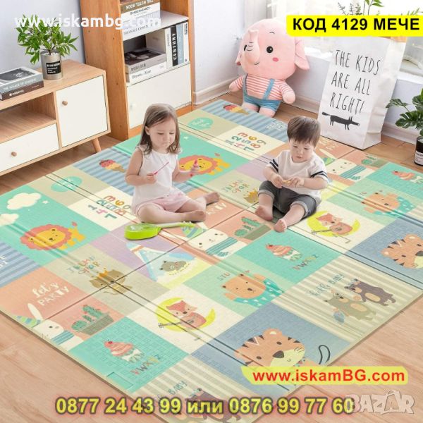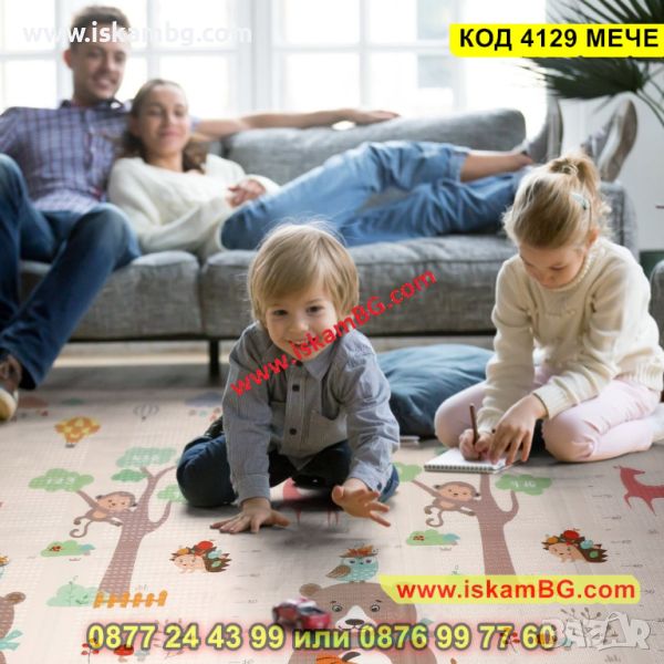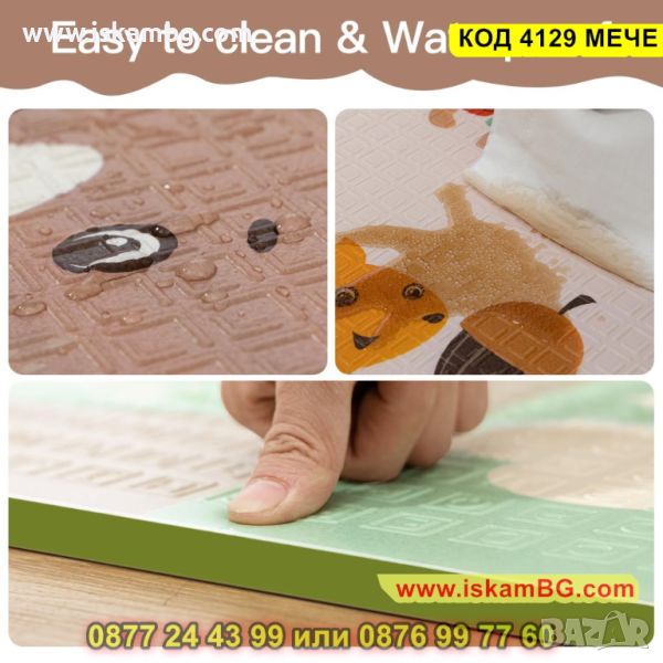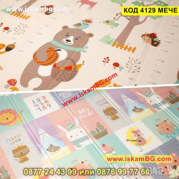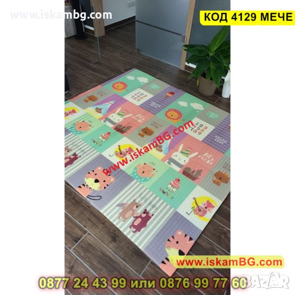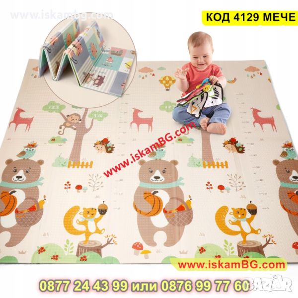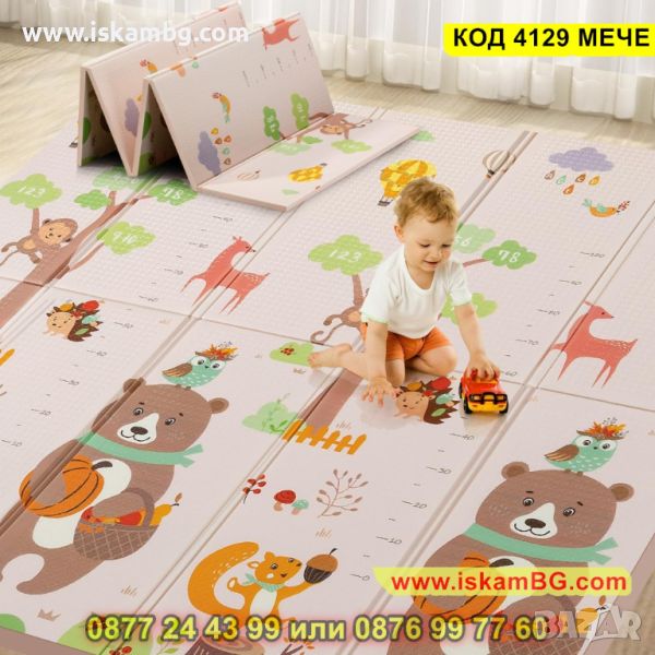 Сгъваемо детско килимче за игра с размери 180x200х1см - модел Мече и горски животни - КОД 4129 МЕЧЕ