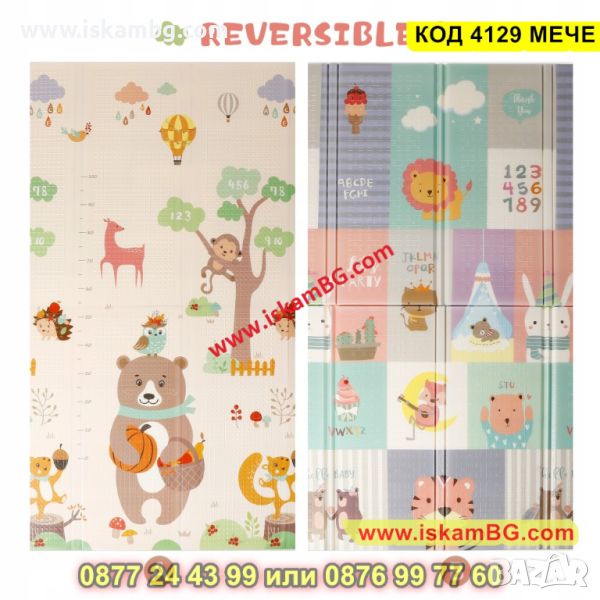 Двустранно, сгъваемо килимче за пълзене и игра от XPE пяна. Материалът, от който е изработено килимчето е нетоксичен и напълно безопасен, което го прави подходящ за употреба от деца, дори и в най-ранна възраст.