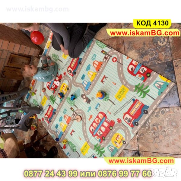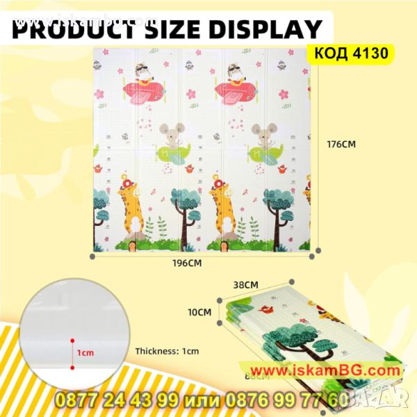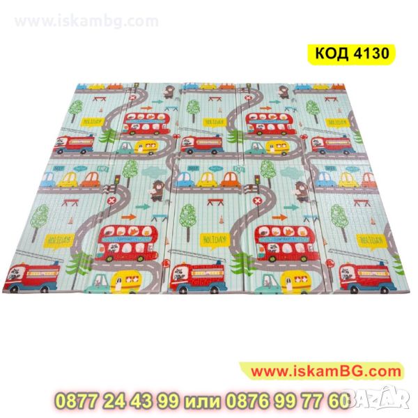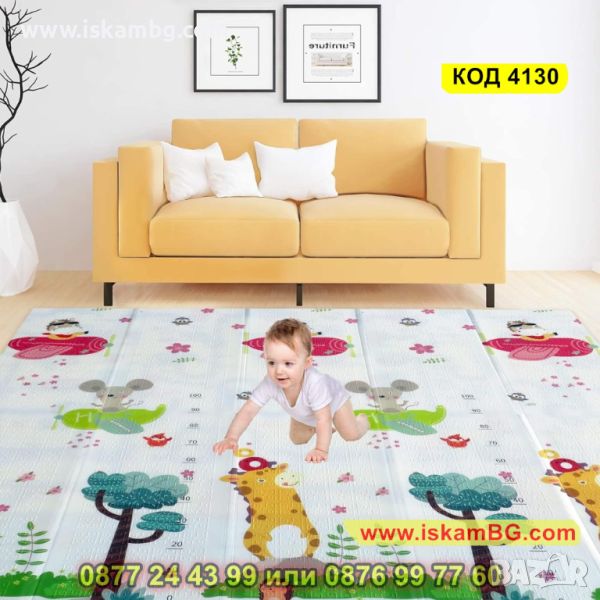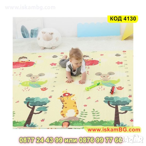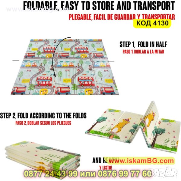 Двустранно, сгъваемо килимче за пълзене и игра от XPE пяна. Материалът, от който е изработено килимчето е нетоксичен и напълно безопасен, което го прави подходящ за употреба от деца, дори и в най-ранна възраст.