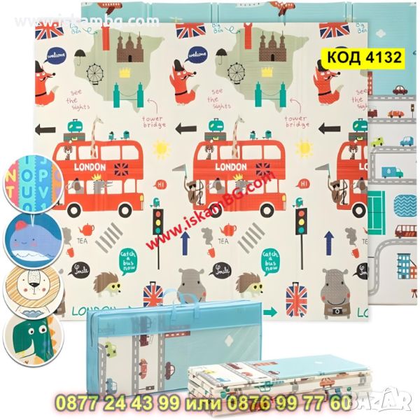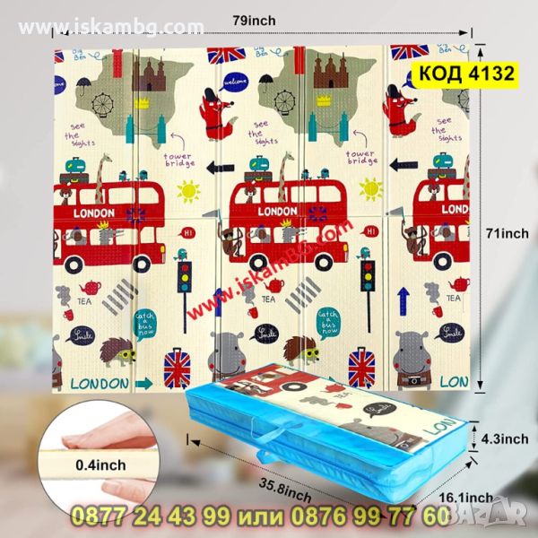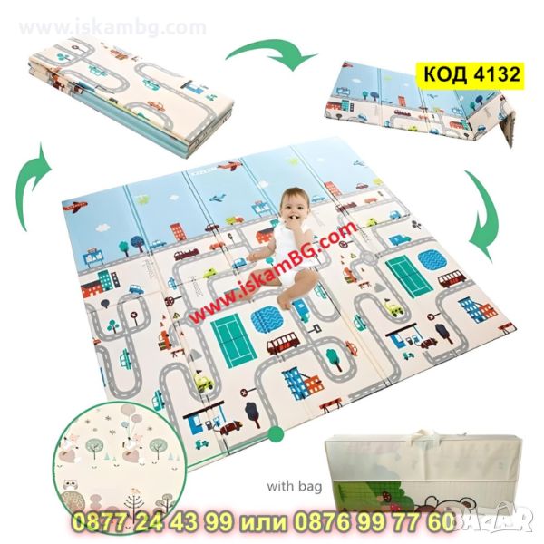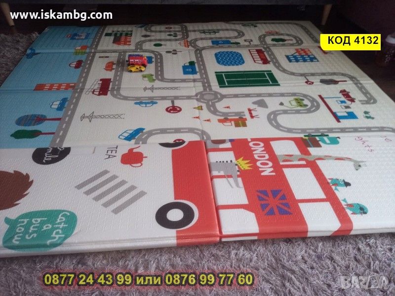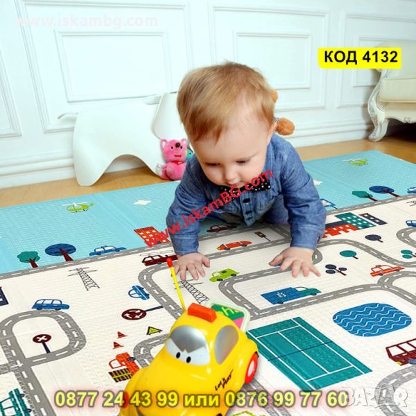 Сгъваемо детско килимче за игра, топлоизолиращо 180x200x1cm - модел Лондон и Писта - КОД 4132