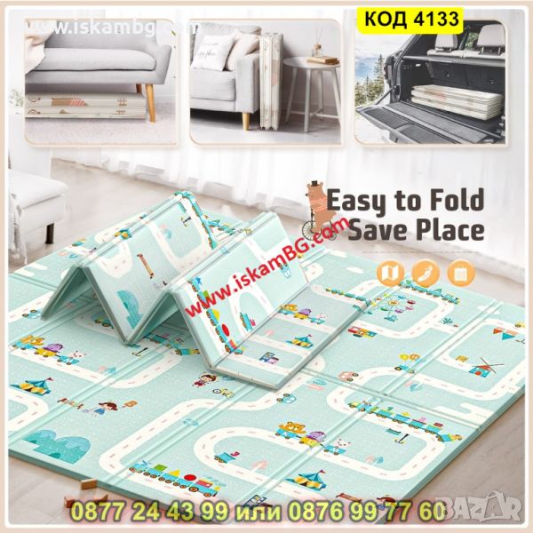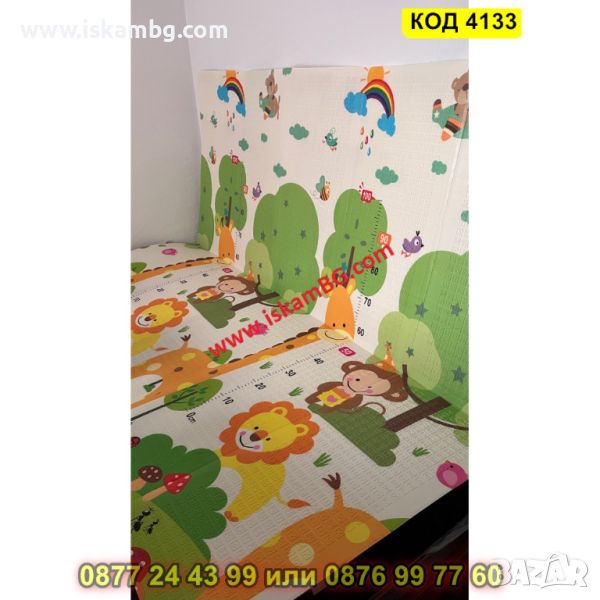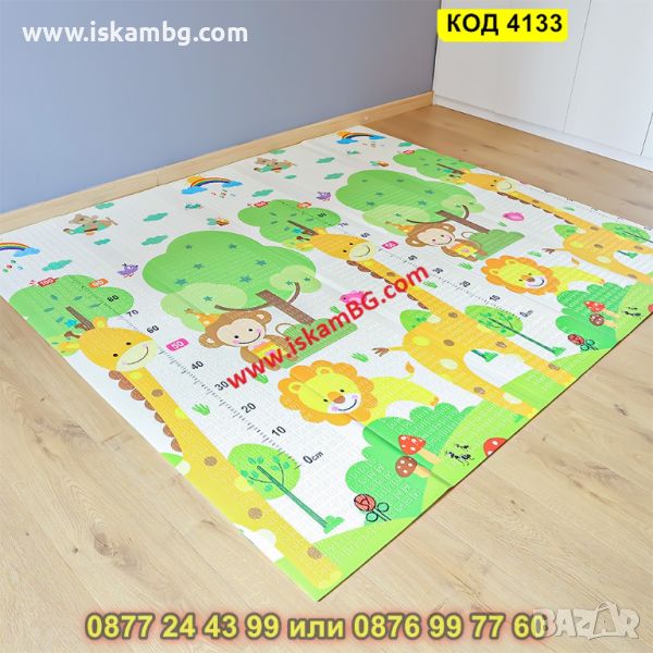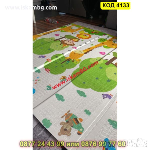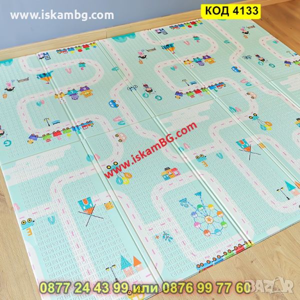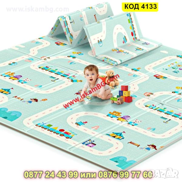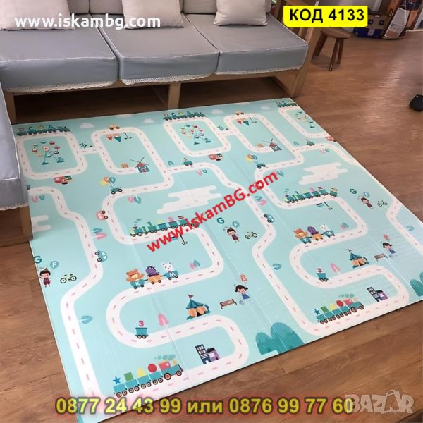 Сгъваемо детско килимче за игра, топлоизолиращо 180x200x1cm - Жираф и Писта с Влакчета - КОД 4133