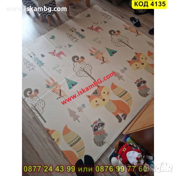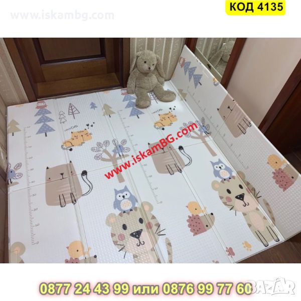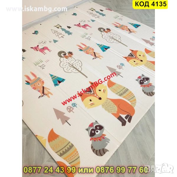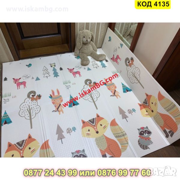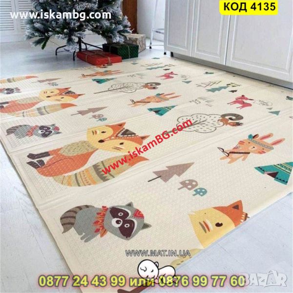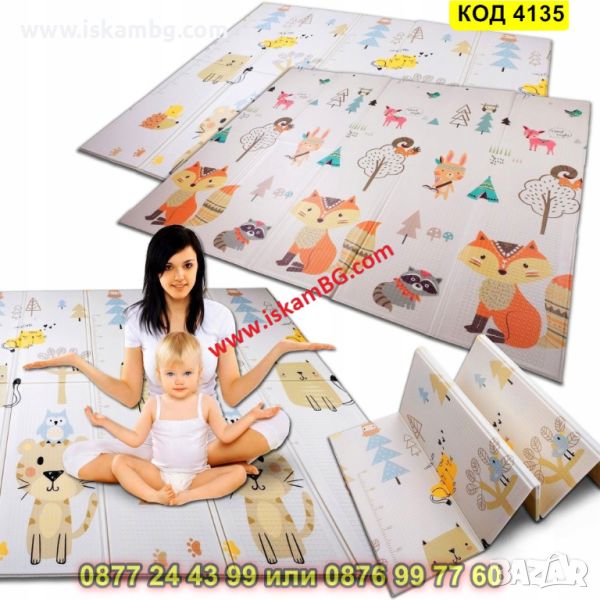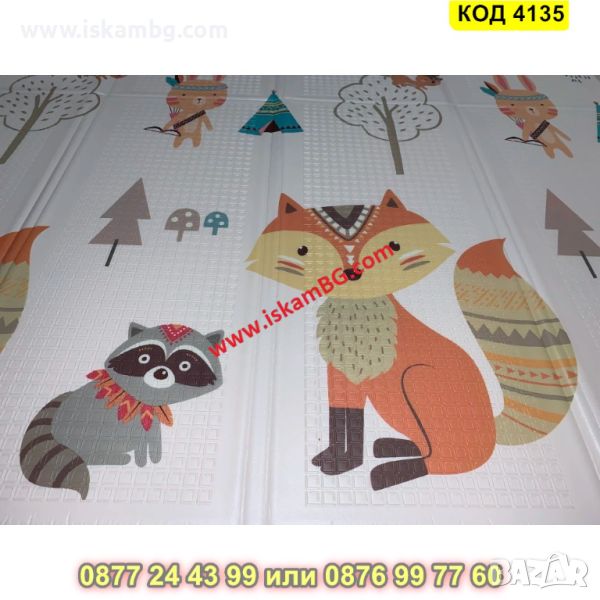 Сгъваемо детско килимче за игра, топлоизолиращо 160x180x1cm - модел Лисица и Тигър - КОД 4135