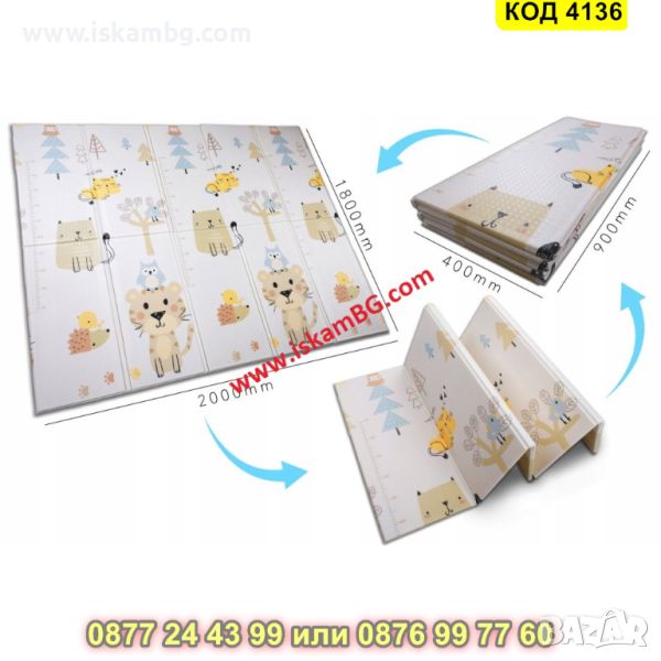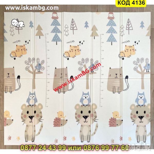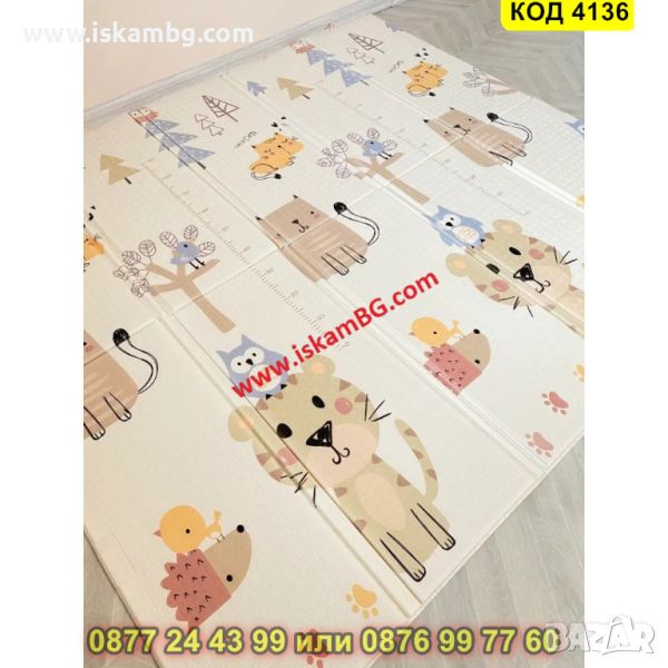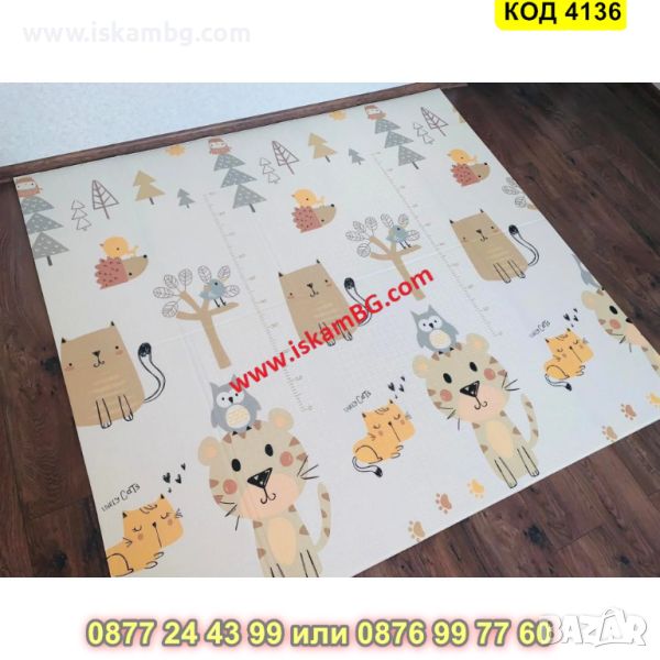 Сгъваемо детско килимче за игра, топлоизолиращо 180x200x1cm - модел Лисица и Тигър - КОД 4136