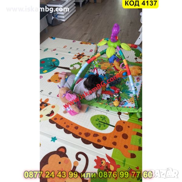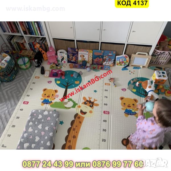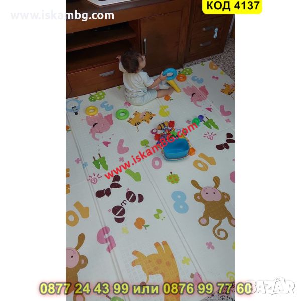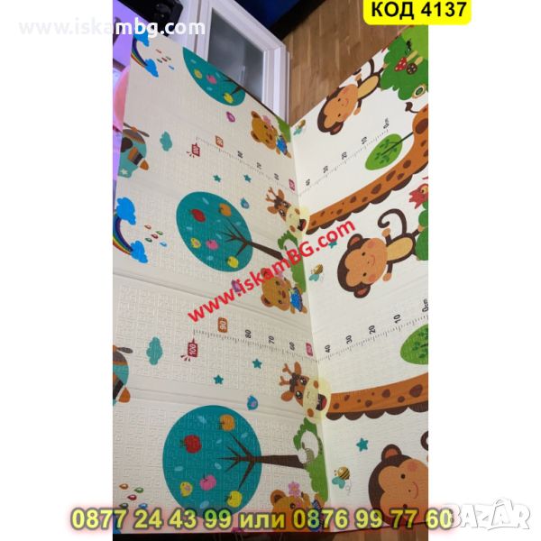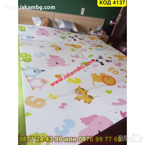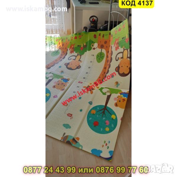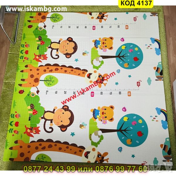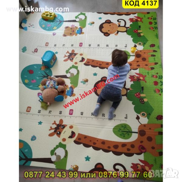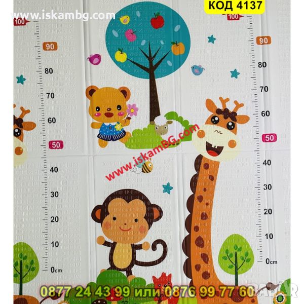 Сгъваемо детско килимче за игра, топлоизолиращо 180x200x1cm - Жираф и Цифри - КОД 4137