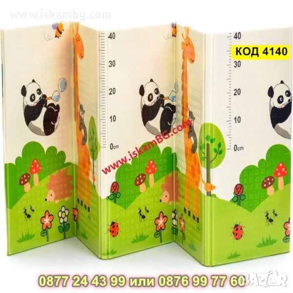 Двустранно, сгъваемо килимче за пълзене и игра от XPE пяна. Материалът, от който е изработено килимчето е нетоксичен и напълно безопасен, което го прави подходящ за употреба от деца, дори и в най-ранна възраст.