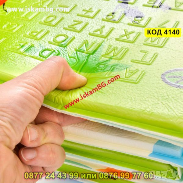 Релефната повърхност предпазва от подхлъзване и в същото време стимулира фината моторика на децата. Цветните принтове стимулират зрението и въображението.