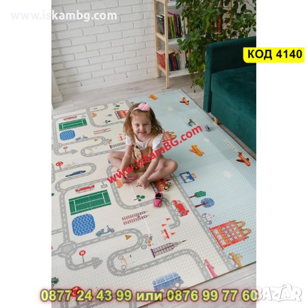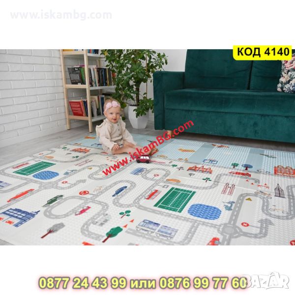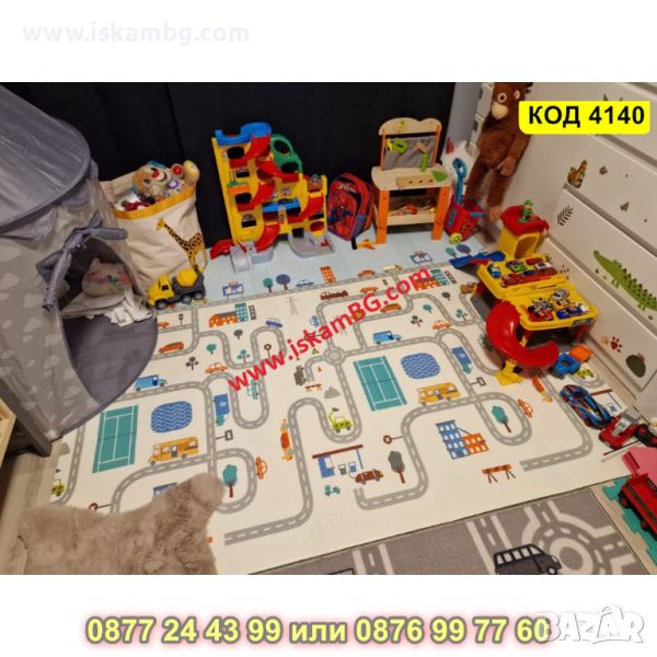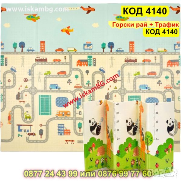 Сгъваемо детско килимче за игра, топлоизолиращо 180x200x1cm - модел Горски рай + Трафик - КОД 4140