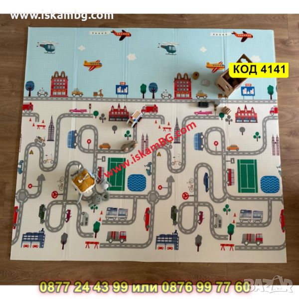 Сгъваемо детско килимче за игра, топлоизолиращо 180x200x1cm - модел Трафик + Джунгла - КОД 4141