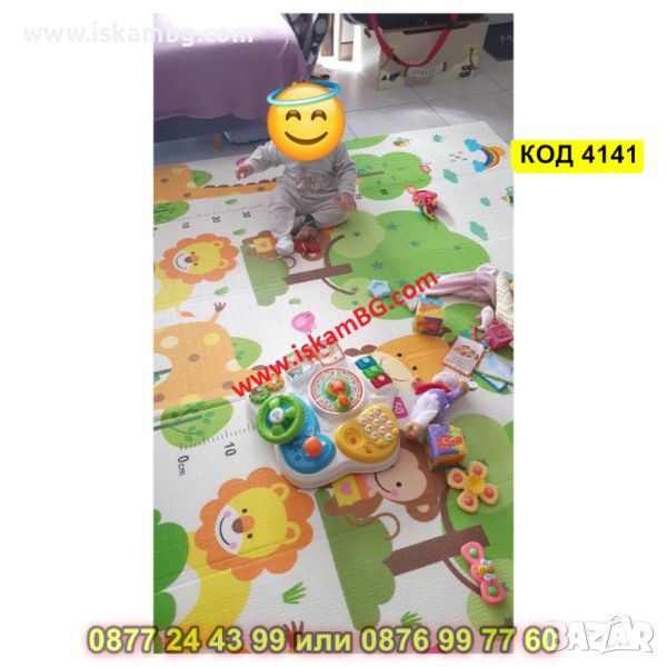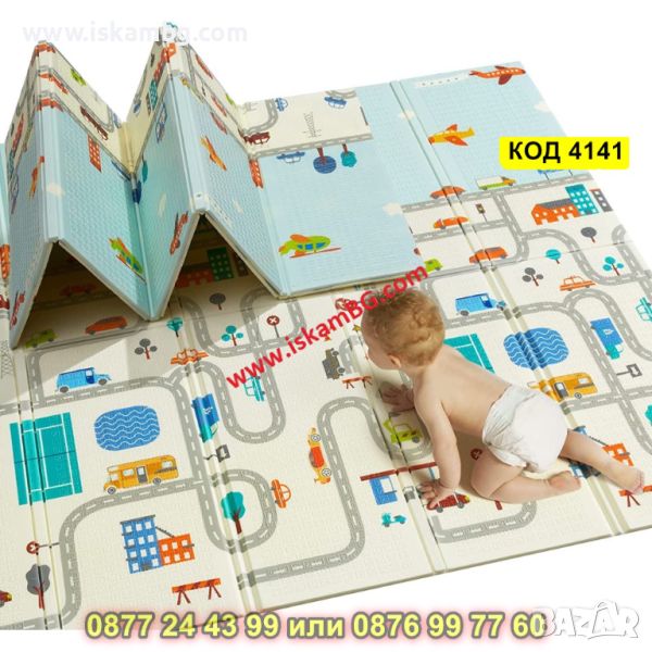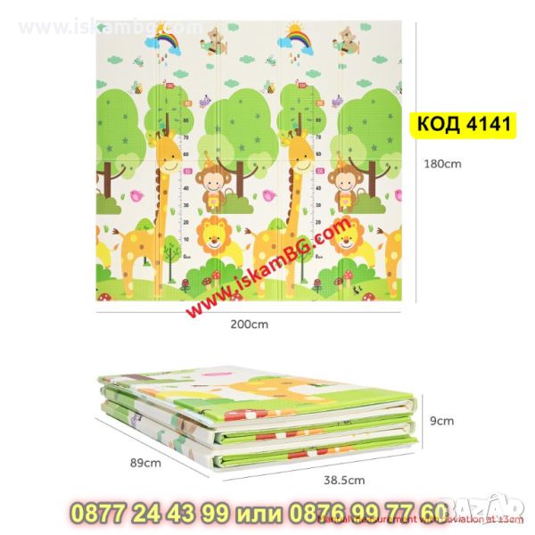 Двустранно, сгъваемо килимче за пълзене и игра от XPE пяна. Материалът, от който е изработено килимчето е нетоксичен и напълно безопасен, което го прави подходящ за употреба от деца, дори и в най-ранна възраст.