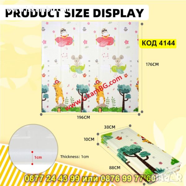 Сгъваема детска постелка за игра, топлоизолираща 150x180x1cm - КОД 4144