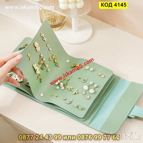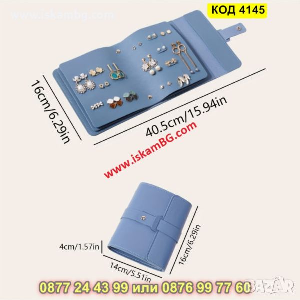 Ако обичате удобство и стил и искате те да бъдат съчетани в едно – то нашият органайзер за съхранение на обеци е перфектният Ви избор! Направен е от еко кожа и има капацитет да събере до 42 чифта обеци. Използвайки този висококачествен органайзер за обеци Вие ще защитите любимите си бижута от надрасквания, износвания и увреждания. Също така, няма да е необходимо да внимавате с това да не попадне и капка вода върху органайзера, защото той е водоустойчив! Предпазва от влага, подарявайки ви елегантен външен вид и отлична защита на цялостта на любимите Ви обеци!