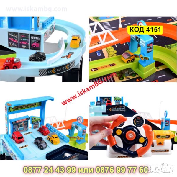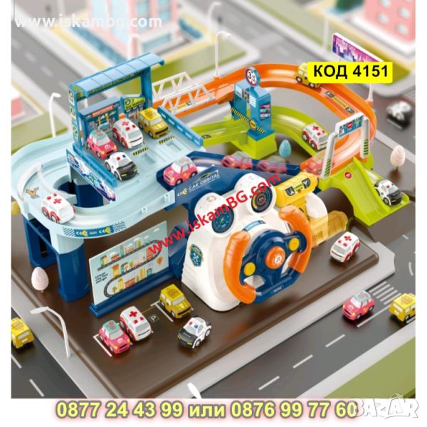 Играчката е изработена от пластмаса, в приятни цветове. Целият комплект е допълнен от цветни стикери, знаци и рекламни банери, благодарение на които пистата прилича на истински град.
