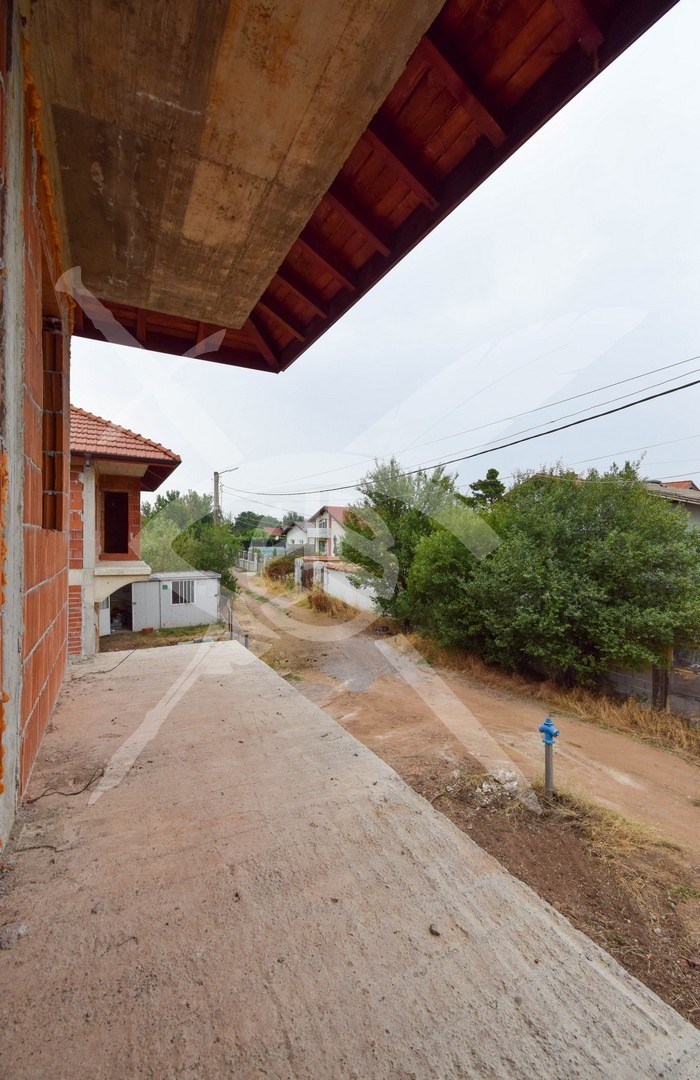 РАЗПРЕДЕЛЕНИЕ: Къщата разполага с площ от 165 кв.м. рапределена на две нива. Първият етаж е разгърнат във входно антре, дневна, трапезаря с кухненски бокс, баня с тоалетна, тераса. Втори етаж разполага с три спални помещения, две бани с тоалетна, две тераси.