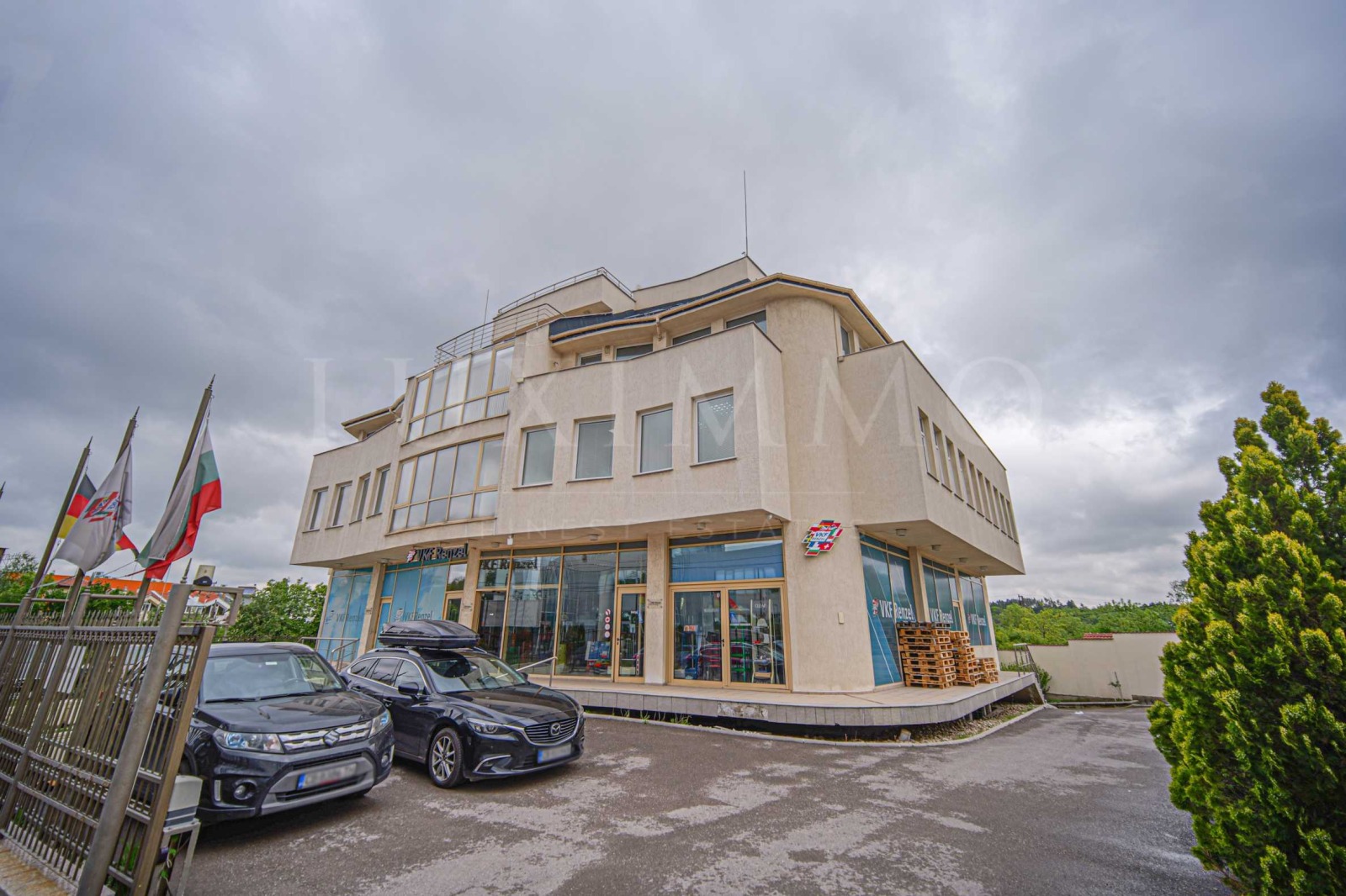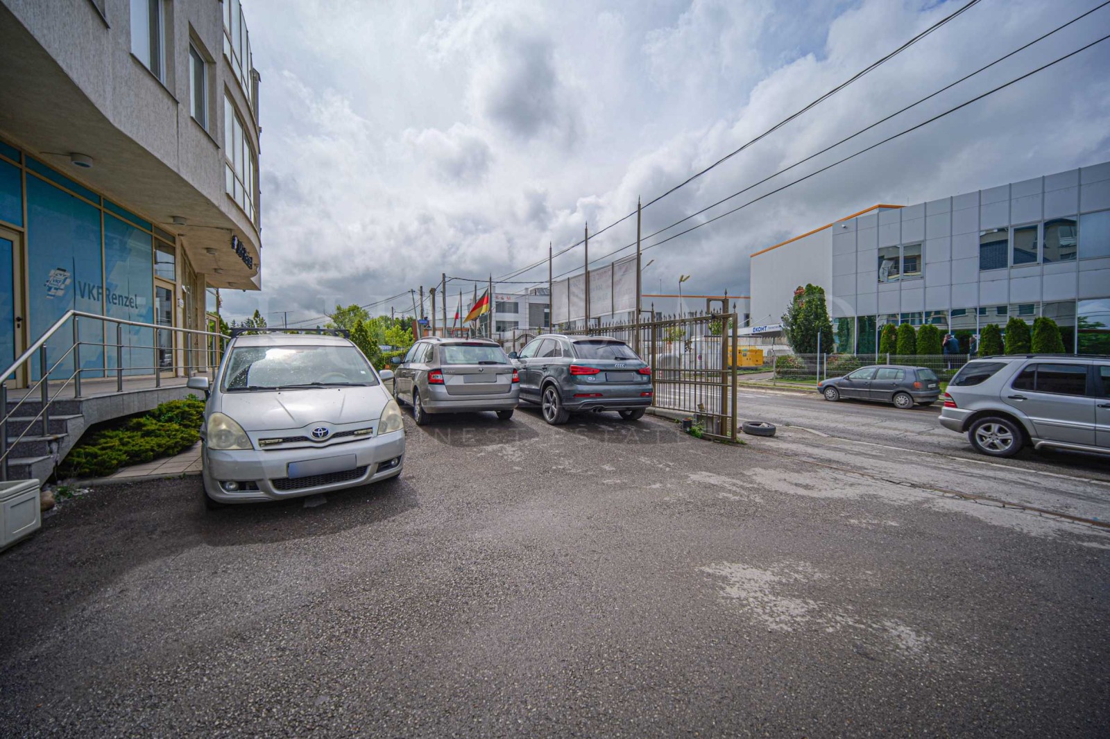 2 входа - за лекотоварни и тежкотоварни автомобили, складови помещения, овален обход около сградата;