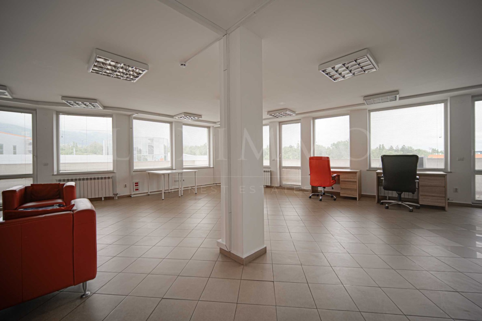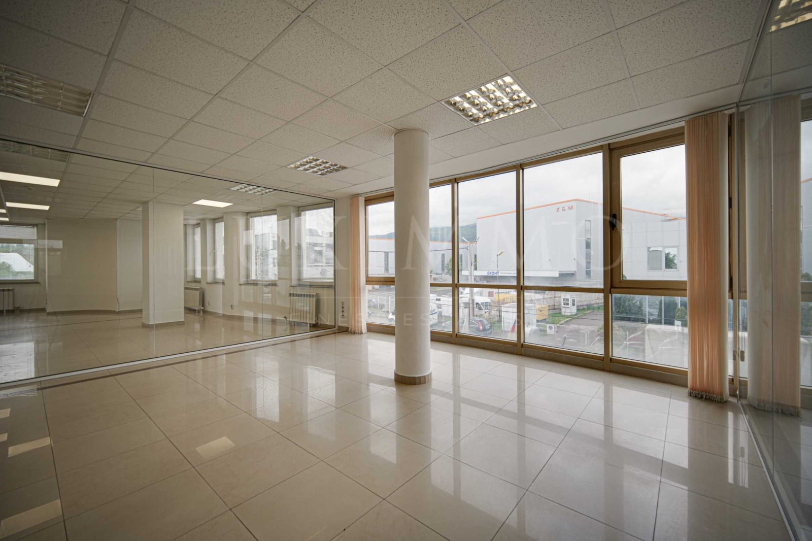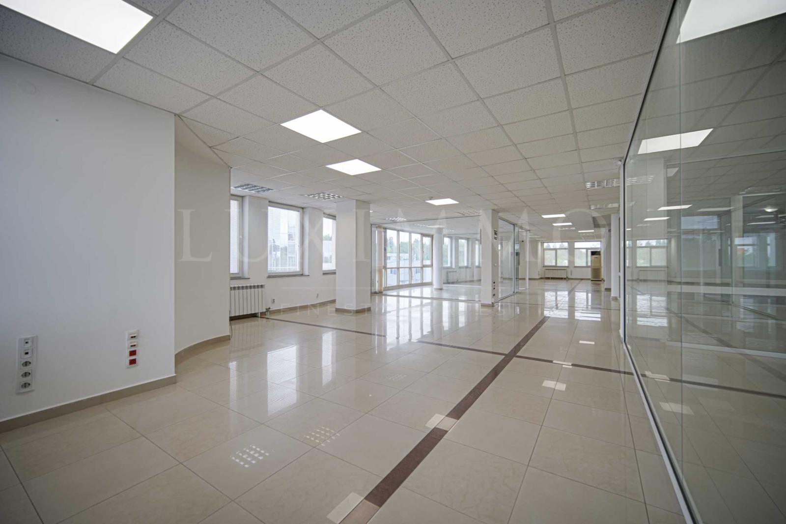 Голям, светъл и отворен офис с площ от 576.31 кв.м, два санитарни възела, сървърно помещение, асансьор, две стълбища (външно и вътрешно).