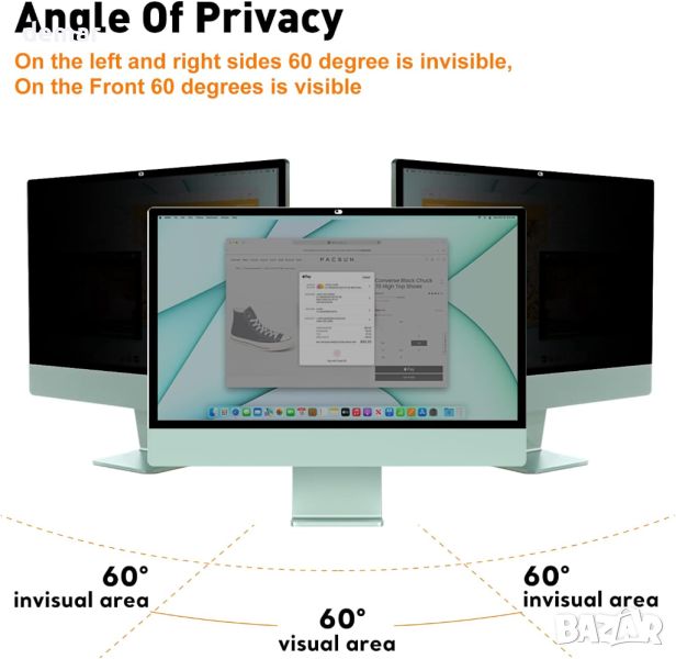 Този 24-инчов екранен филтър за поверителност, проектиран специално за 24-инчови монитори iMac с аспектно съотношение 16:9, предлага оптимална поверителност в обществени зони и зони с висок трафик чрез иновативна технология за микро жалузи. Той ефективно затъмнява екрана, когато се гледа от 30°-60° ъгъл, запазвайки яснотата, когато се гледа директно, и адаптира нивото на поверителност с регулируема яркост на монитора. Освен че подобрява поверителността, той филтрира 96% от ултравиолетовите лъчи и намалява 65% от синята светлина, предпазвайки очите ви. Инсталирането е безпроблемно със своето подвижно силиконово уплътнение и дизайн без мехурчета и включва миещ се силиконов компонент, твърда пластмасова монтажна плоча за съхранение, матово покритие за минимизиране на отблясъците и като бонус мека, миеща се, сгъваема капак против прах. В пакета има и комплект за почистване.