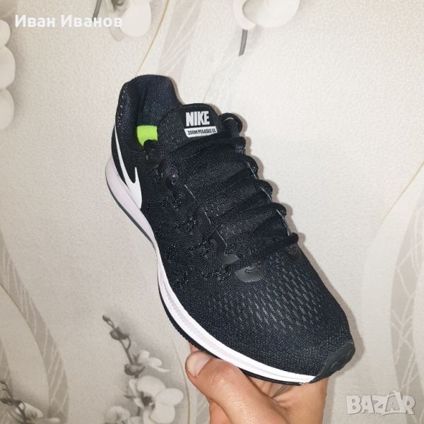 маратонки Nike Air Zoom Pegasus 33 Nike Air Zoom Pegasus 33 .Нови . Един от най добрия модел на Найк който остава най продавания и подържа цената си с годините.Много удобни , леки и качествени.Цена доскоро по магазините около 230 лева.Неутралните маратонки за бягане . Nike AIR ZOOM PEGASUS 33 са подходящи особено за дълги разстояния. Те предлагат абсолютен комфорт и дълга издръжливост. Технологията Zoom Air осигурява меко усещане в петата и чувствителна походка - от първата стъпка. Nike Zoom с омекотена предна и средна част на стъпалото предлагат по-бързо и по-удобно бягане. Горната част е оборудвана с технологията Flywire, състояща се от меки, но издръжливи влакна, които свързват средната част на стъпалото и стъпалото отдолу и създават поддържащо регулиране на стъпалото, което пасва идеално и напълно се адаптира към вашите стъпки. Този модел е подходящ за спортни бегачи.Дишаща мрежа и безшевна материя в горната част съчетават адаптивност, комфорт и подкрепастрахотно поглъщане на удара8 мм падане от петата до пръстите