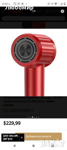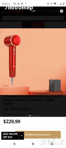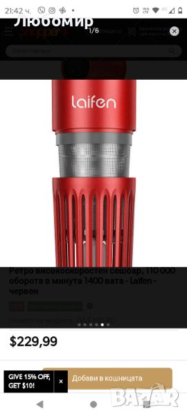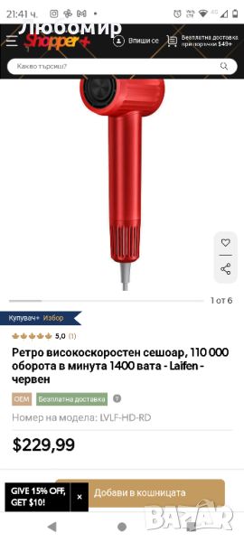 рвено за горещ въздух (75 °C)Промяна на цвета за циркулация на студен/топъл/червен въздухЛесен за пренасяне, удобен за пътуване, подходящ за домашни любимциСигурният магнитен филтър предотвратява засмукването на косата.ТипСешоарМаркаЛайфенЦвятЧерно, червено, бялоСкорост на двигателя110 000 оборота в минутаМощност1400 ватаСтойност на шума59dBДължина на кабела1,8 м (69 инча)Максимални настройки за топлина23,89 ℃ (75 ℉)Минимални настройки за топлина10 ℃ (50 ℉)Тегло407 г (0,9 фунта)Размер27,94 x 7,11 x 8,89 см (11 x 2,8 x 3,5 инча)Включва1 x ретро сешоар