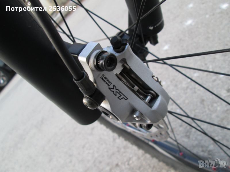 алуминиев байк . от личната колекция . пълен сет шимано деоре хт 775 капли с главини и дискове заден и преден апарат ,.команди с комбинирани хидравлики . дуал контрол 3х9 . касета 9 и верига шимано деоре ,вилка рок-шок 100 мм ход., гуми максис на 80 % годни .всичко слагано ново . . много малко ползван велосипед .всичко работи отлично.