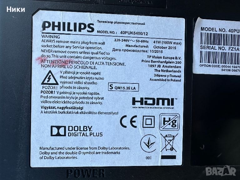 40PUK6400/12 Платката е работеща и свалена от работещ телевизор с чупен