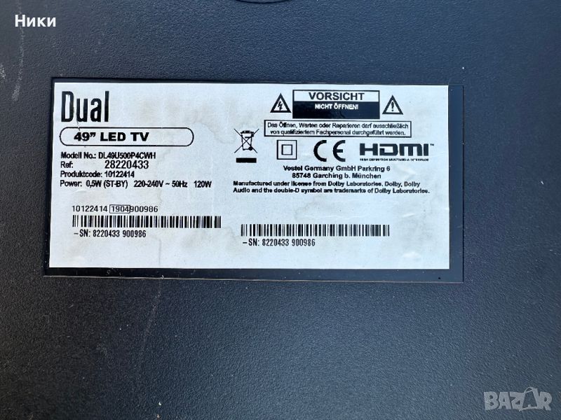 Power Board Vestel 17iPS72 от телевизор Dual DL49U500P4CWH Платката е работеща и свалена