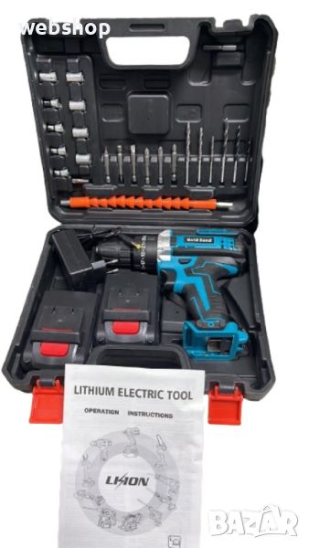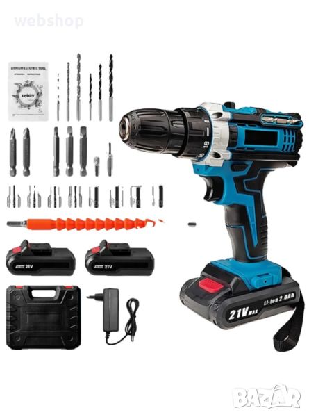 Акумулаторна бормашина с 2 батерии 21V ще ви помогне да направите всяка ремонтна работа много по-бърза и лесна; можете да работите с нея върху дърво, метал и пластмаса. Винтовертът има двускоростна скоростна кутия, всяка от скоростите на която е предназначена за определени видове работа: първата скорост е предназначена за завинтване и развиване на винтове, втората е за пробиване.