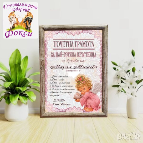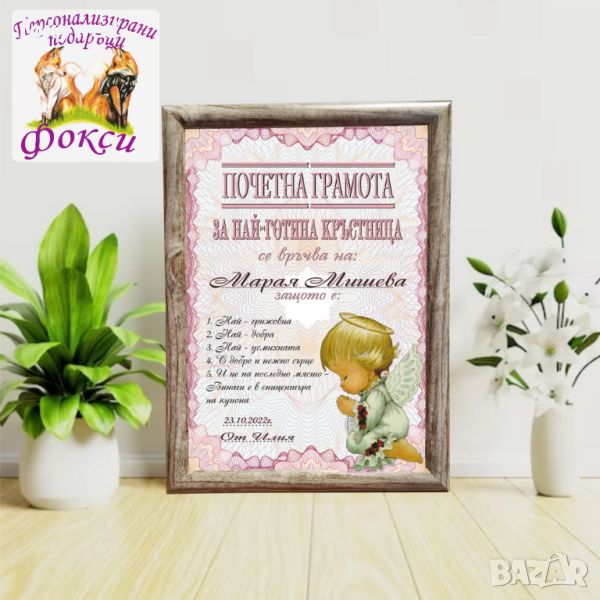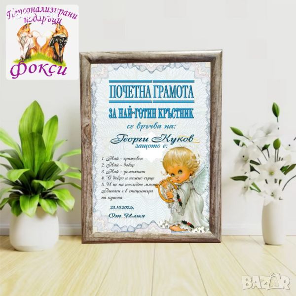 Грамота в рамка за Кръстници → Обява 45521153