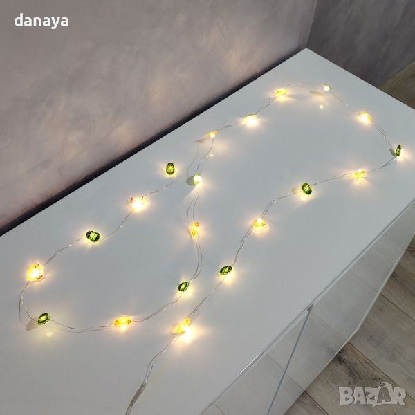 Великденска декорация светеща гирлянда от шарени великденски яйца и пиленца. Чудесно допълнение и завършек на великденската украса. Стоят много ефектно, където и да ги поставиш.