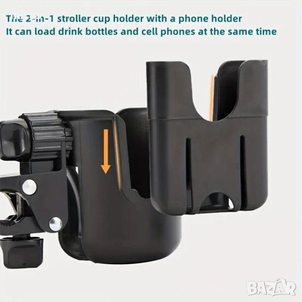 Поставка за чаша за количка с поставка за телефон, универсална поставка за бутилка за инвалидна количка, проходилка, велосипед, скутер, аксесоар за количка.
