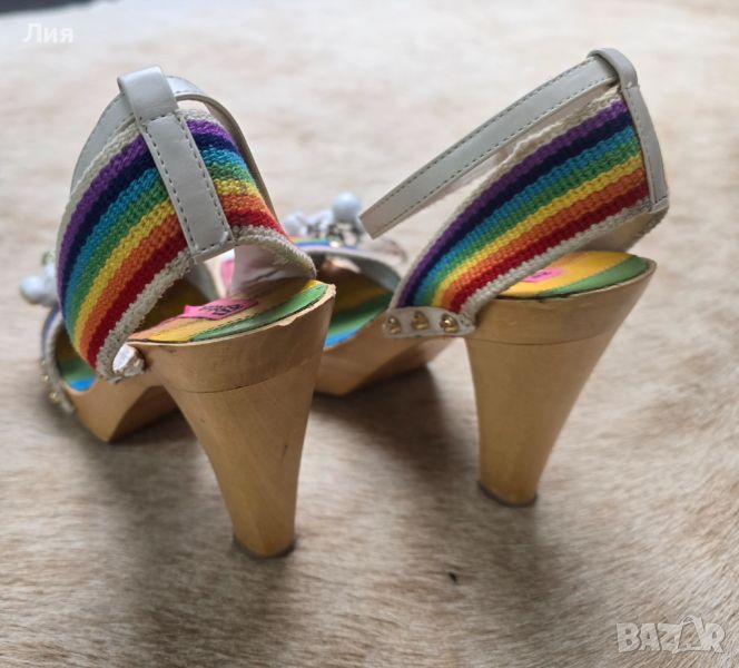 Размер 6 и 1/2 . Подметка дърво. Стелка естествена кожа. Ток 11 см.
