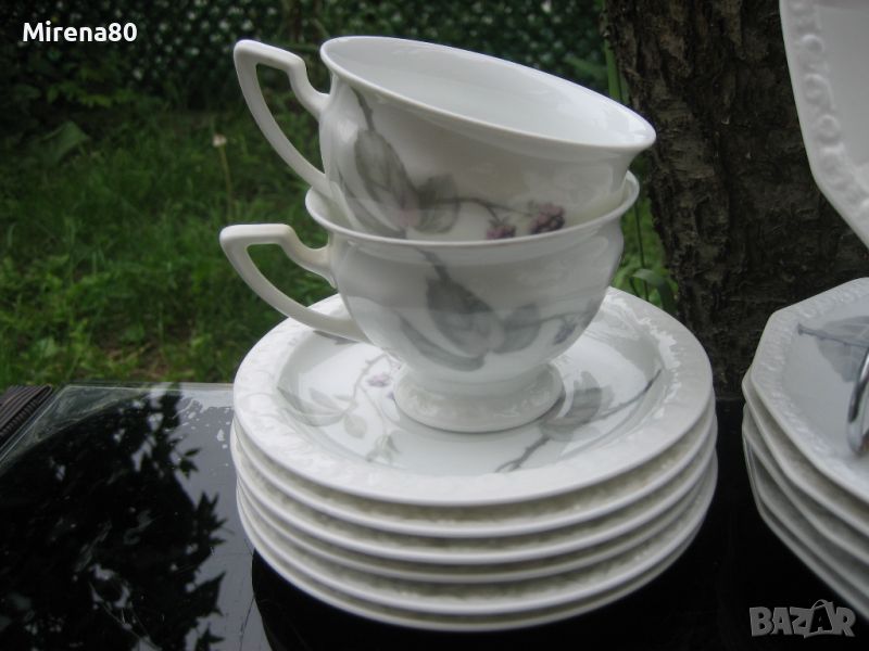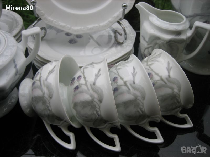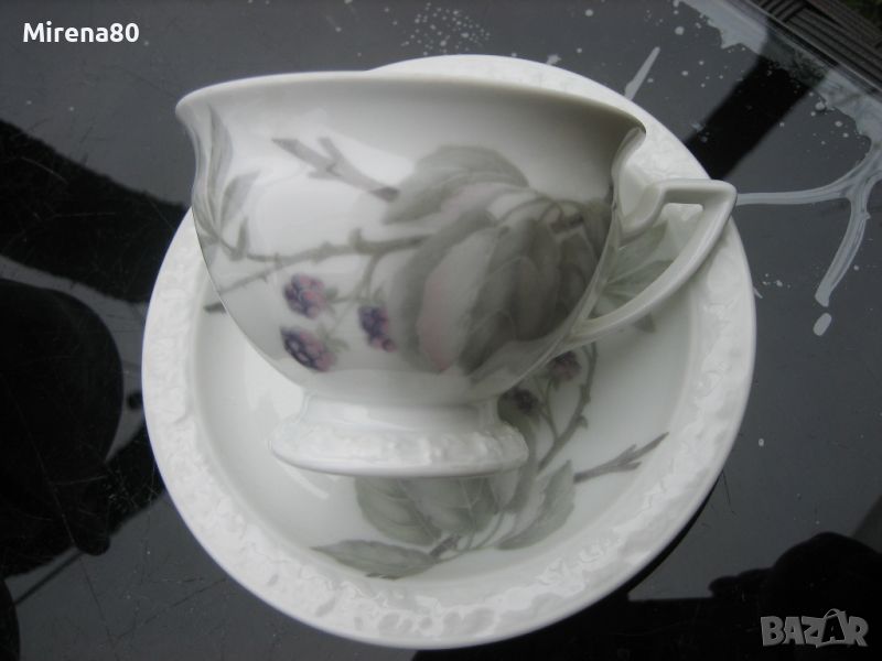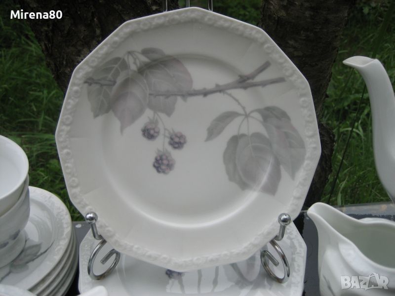 Rosenthal Maria е в непрекъснато производство от създаването си до днес.Фин бял порцелан в комбинация с релефен борд и декор къпинки в пастелни цветове - нежност и романтика ! Пълен и в абсолютно безупречно състояние, като нов.