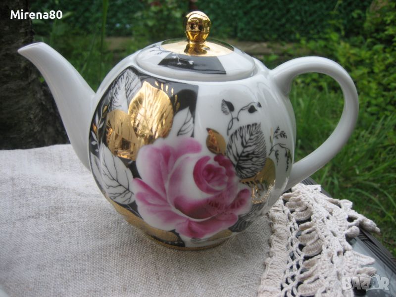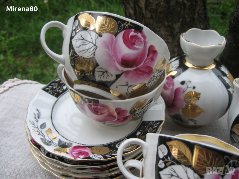 Представям ви един великолепен руски сервиз, който няма нужда от описание - снимките говорят сами за себе си. Ръчно декориран, много злато, рози и контрастиращ черен цвят - истински разкош ! Сервизът е като нов, без никакви следи от употреба. Рядък, ценен и безупречен - истинска находка.