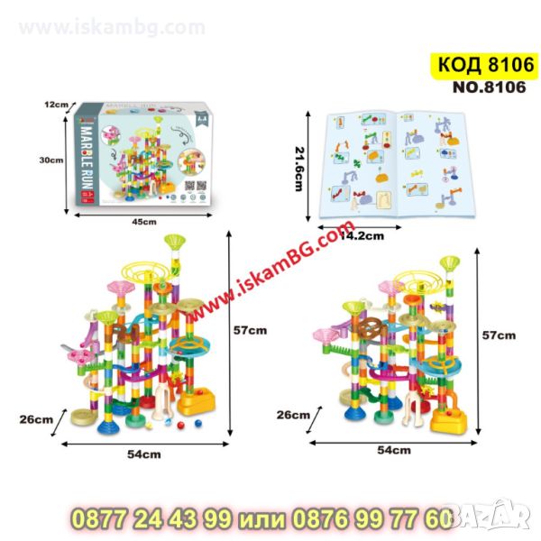 Комплектът включва: 105 свързващи елемента и 45 броя топчета