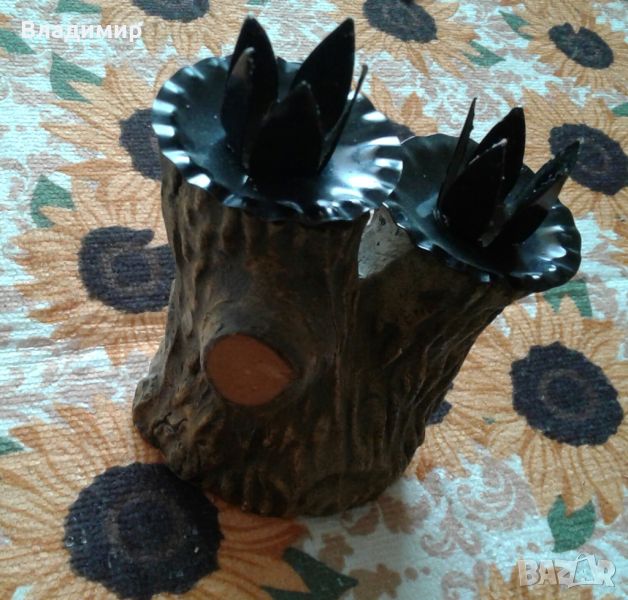 Продавам от 70-те години на 20 век декориран свещник в комплект с две свещи червена и жълта. Състоянието е показано на снимките.
