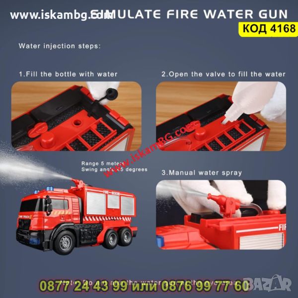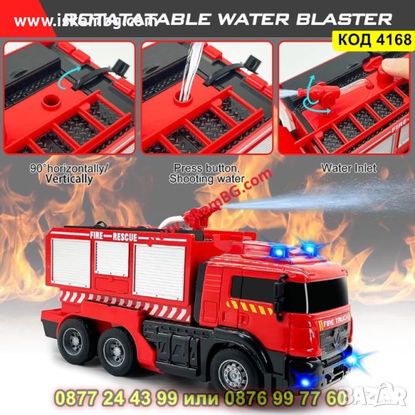 Колата пожарна свети със синя светлина, което също допринася за уникалността на играчката.