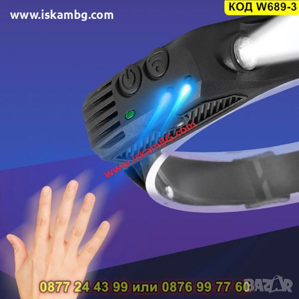 ✅ Допълнително челникът е оборудван с възможност за включване на сензор за движение (чрез бутон на корпуса), който включва и изключва фенерчето с жест на ръката. Тази опция ще бъде особено полезна, например когато работите върху кола или други машини. Тя ще ви позволи да включвате/изключвате източника на светлина, без да докосвате челникът с мръсни ръце.