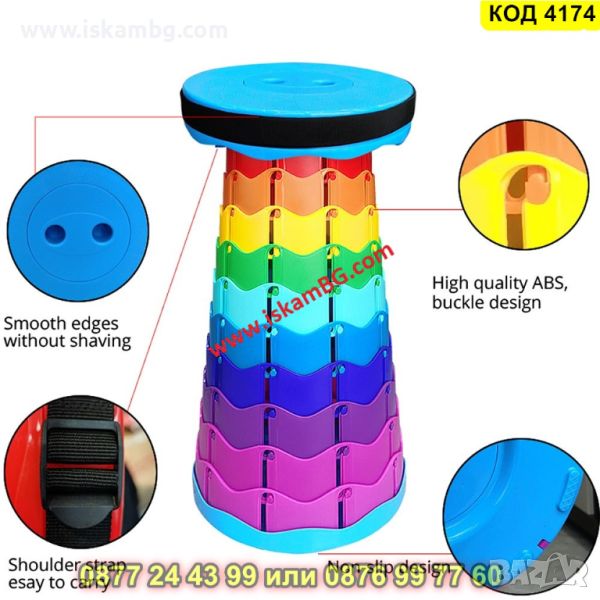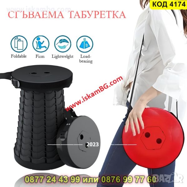✅Табуретката е наистина преносима и се предлага с регулируема презрамка. Благодарение на това оборудване и компактните размери на сгънатата табуретка можете да я закачите на рамо като чанта и да я носите със себе си буквално навсякъде.