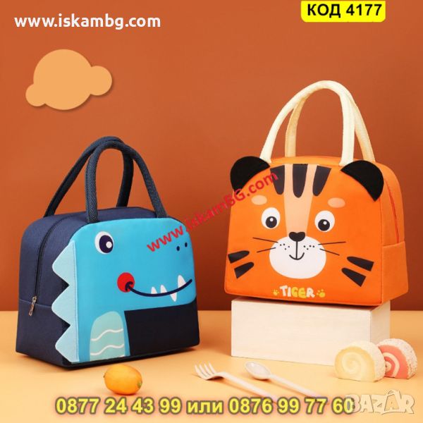 Детската термо чанта, която Ви представяме е страхотен аксесоар, ако се чудите как да запазите храна на Вашето дете за по –дълго време топла и вкусна. Термо чантата е с рисунка на тигър и има термоизолационно вътрешно покритие. Закопчава се с помощта на цип и има дръжки за носене, чиято дължина е 12 см.